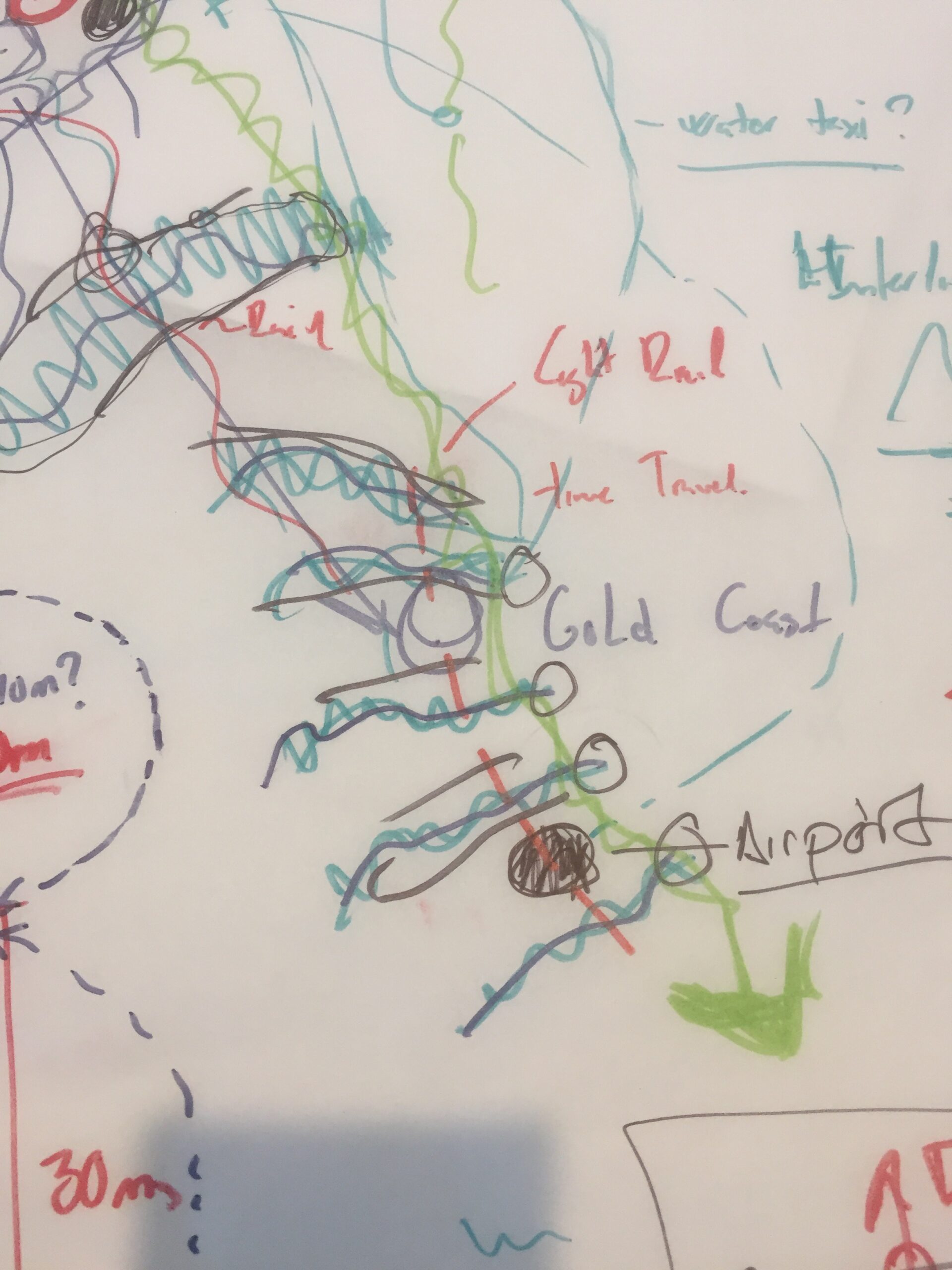 We set about mapping SEQ as a city region. Some of what was mapped is already known or indicated, some is existing facilities, places and development. These are the ‘known-knowns’. We can also posit that likely future scenarios will include certain types of development and in identifiable locations. These are the ‘known unknowns’. Finally, there are the ‘unknown unknowns’, things that are only at the moment ideas, or indeed may not have been thought of to date.