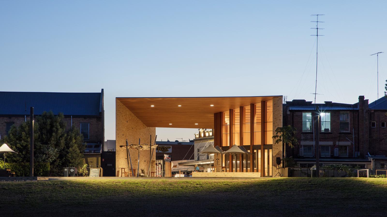 It goes to the full height of the ensemble of main street buildings, which keeps the scale of the streetscape while forming a monumental void. As well as a link, it acts as a frame for a shaded social gathering space containing benches and tables, an outdoor cinema, a stage, a forecourt to a two-story restaurant, café, a gallery for urban art and public amenities. Architecturally, the space is shaped three-dimensionally with angular walls. This directs the pedestrian to the waterfront whilst giving users a unique visual experience. Timber-battened ceilings and use of clay bricks, with a fine-scaled patterning, give the structure warmth, add visual interest and maintains a human scale.