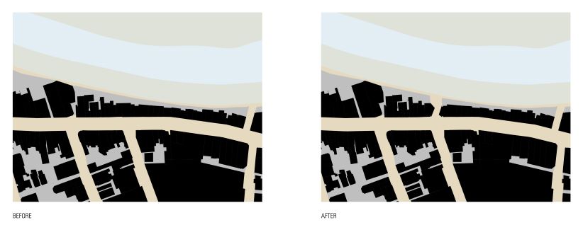 - These “Before” and “After” figure-ground diagrams reveal the intended changes to the permeability of the built form.
