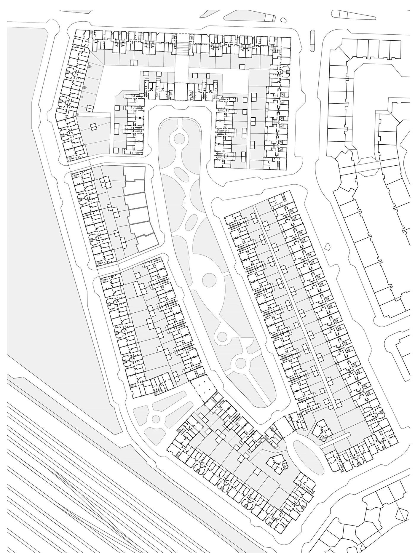 In a very different way, the Borneo-Sporenburg project in Amsterdam achieves the same combination of invention and tradition. Its dense pattern of three-storey-high closed perimeter blocks of individual townhouses recalls 17th-century Amsterdam, but at the same time required new typological interventions as the plots for the row houses were too small to accommodate a house, a parking place and a garden. Unlike the Barbican, which was designed by one single architectural firm, the housing of Borneo-Sporenburg has been built to the designs of dozens of architectural practices, finding its most extreme expression in one part where 60 townhouses were all designed individually. Considered an experiment, it nonetheless repeated the standard way of building houses in Dutch cities over many centuries. The ‘return’ to a fabric of townhouses in a new residential area was chosen to offer middle-class families an alternative within the boundaries of existing cities, as they were moving out of the city in large numbers to suburban housing in surrounding new towns. The experiment proved very successful in keeping families in the city, and was subsequently repeated in the new, much larger extension of IJburg.