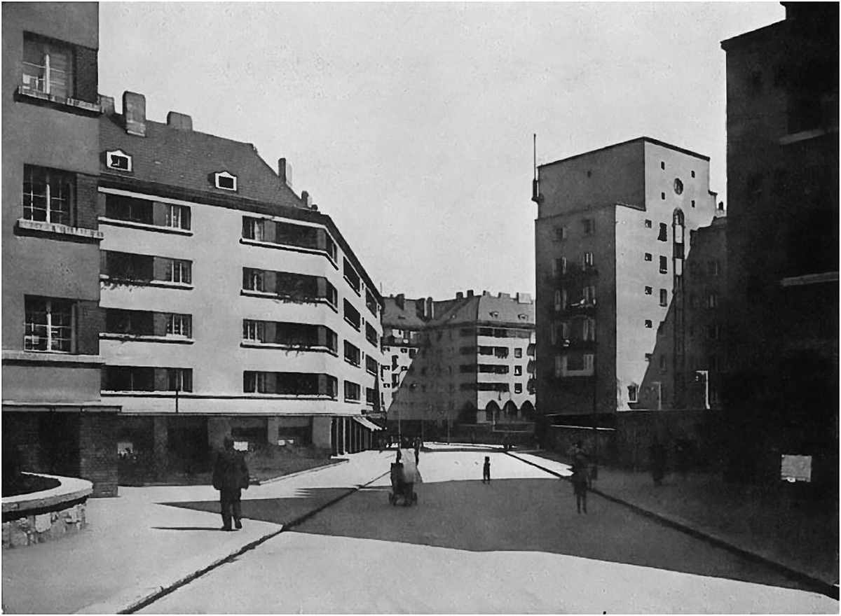 - Rabenhof, Vienna, Austria, 1925, designed by Herman Aichinger and Heinrich Schmid. Photo from Die Wohnhausanlage der Gemeinde Wien auf dem Gelände der ehemaligen Krimskykaserne (Thalia, ca.1929).