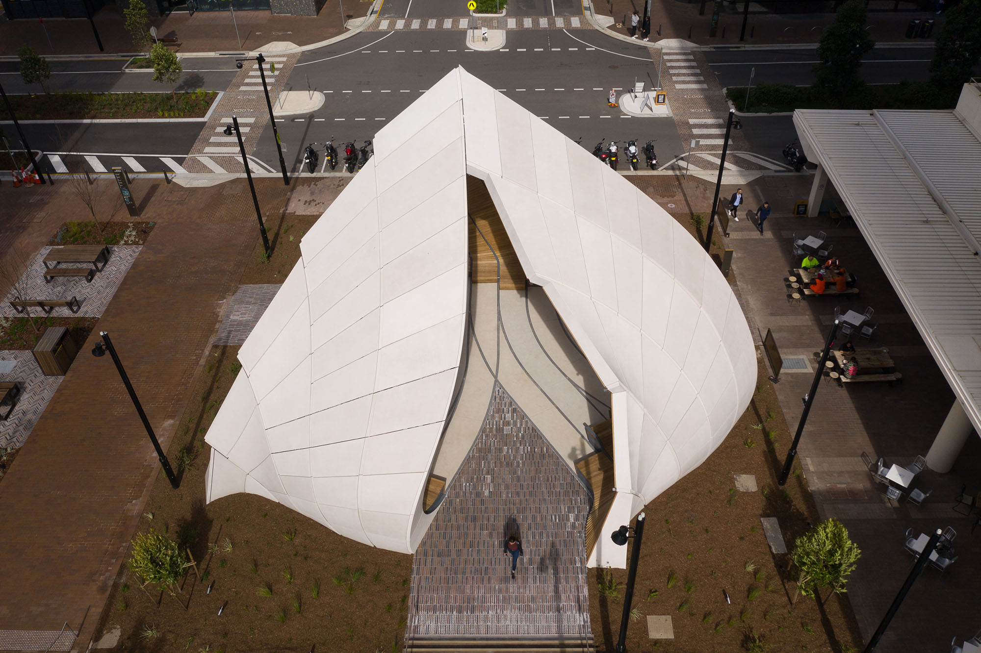 This project, an urban design pavilion, forms a community and visual focal point of the South Eveleigh Precinct Redevelopment. The precinct is a major new retail, business centre and technology park near Redfern Station of which the heritage listed locomotive workshops are a part. South Eveleigh was previously recognised as Australian Technology Park. The revitalisation of Eveleigh is the first critical piece of the Central to Eveleigh corridor transformation in Sydney and is a catalyst for the upgrade of the surrounding neighbourhoods. This precinct is destined to become a world-class technology and innovation hub and a vibrant destination where people come together to connect physically, culturally and socially.