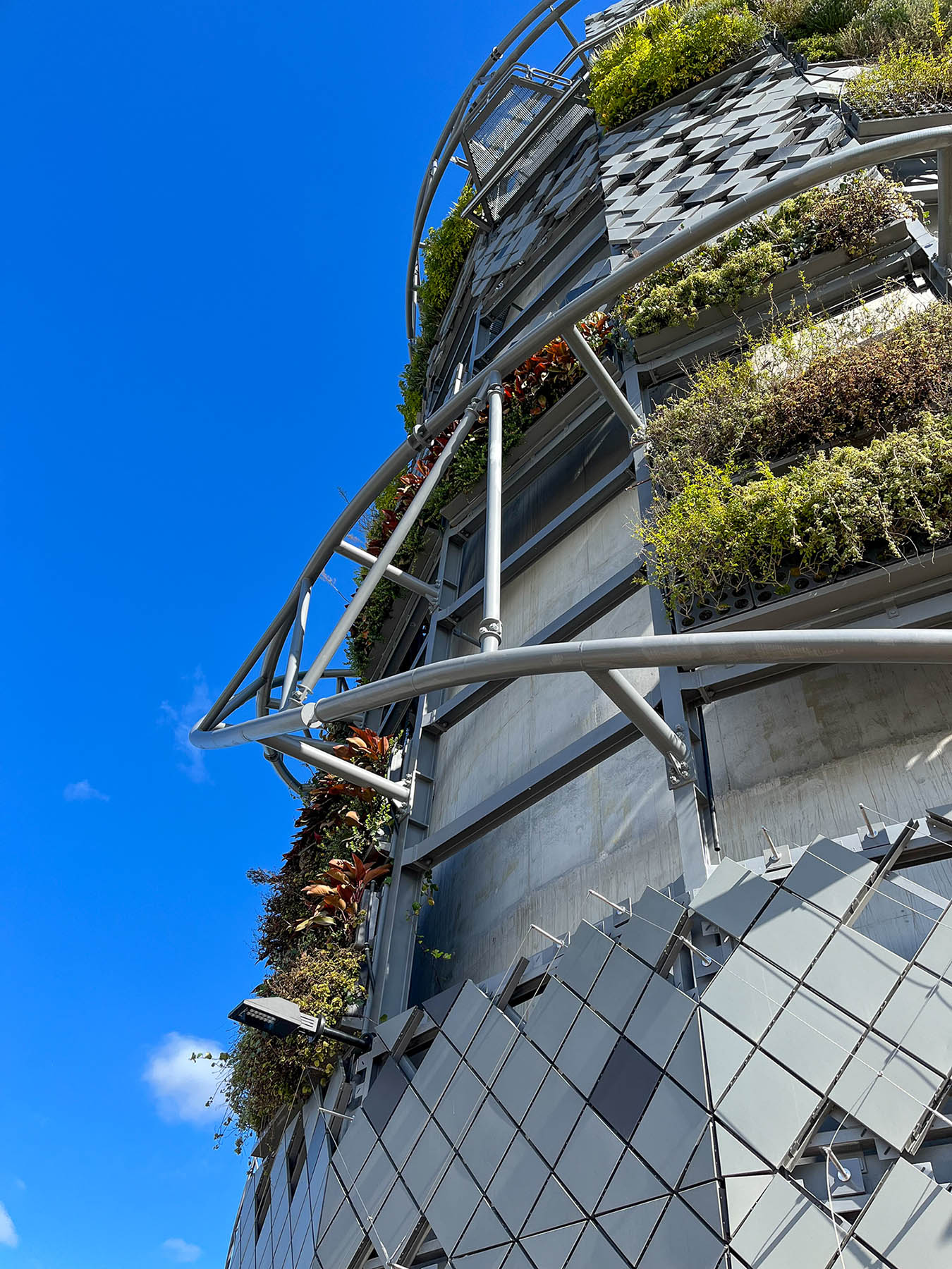 Enveloping the towers, this dynamic system of steel morph from the regularity of columns and beams to the organic bridge forms situated above pedestrians and cyclists. Biophilic green-wall modules further integrate the structures into the parklands and transform this infrastructure into a habitat for urban biodiversity.