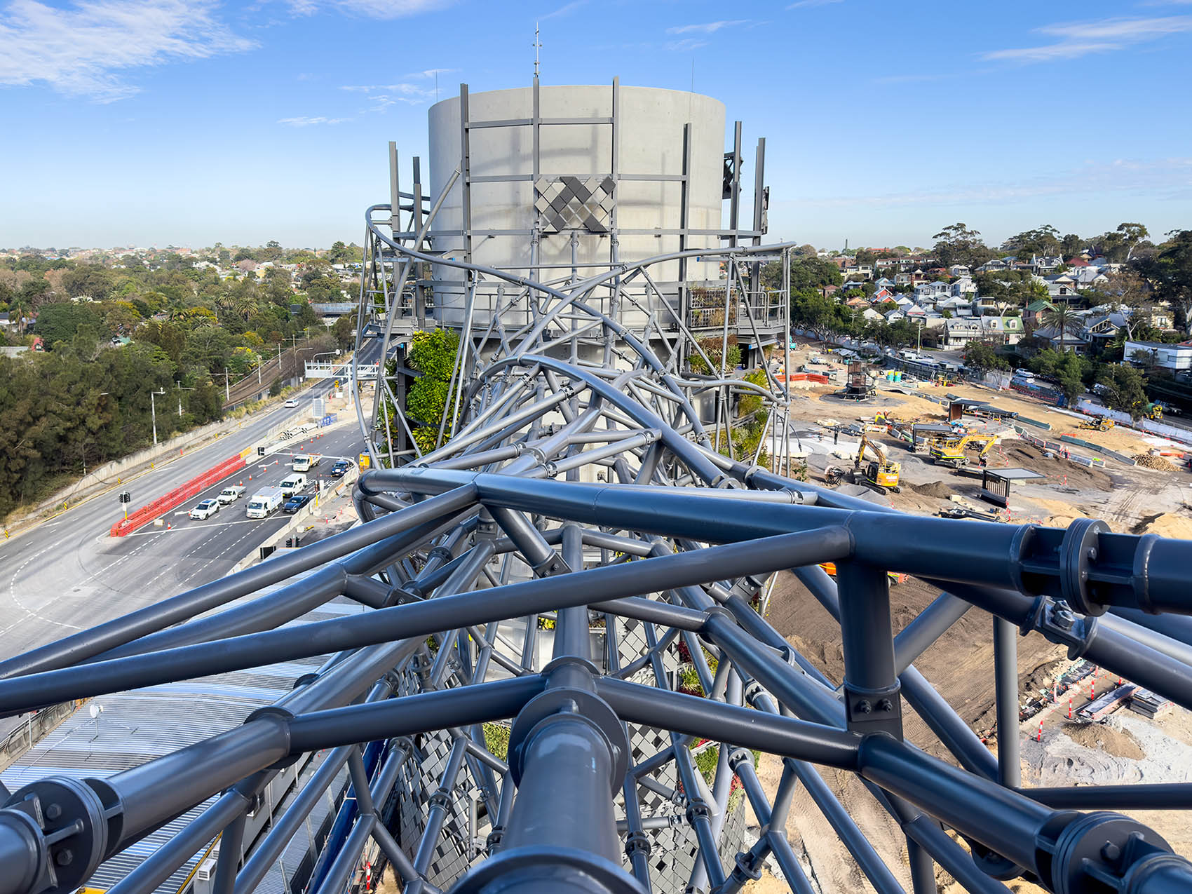 Studio Chris Fox Project Team: Chris Fox, Tina Salama, Michael Fox. Commissioned by: Novo Rail Program Alliance for Transport for NSW. Computational and Fabrication Modelling: Studio Chris Fox and AR-MA. Engineered by: Bollinger+Grahmann. Fabrication: Lumark. Installation: NASS Projects. Architect: COX Architecture. Art Strategy: Cultural Capital. Photos: Josh Raymond and Chris Fox.